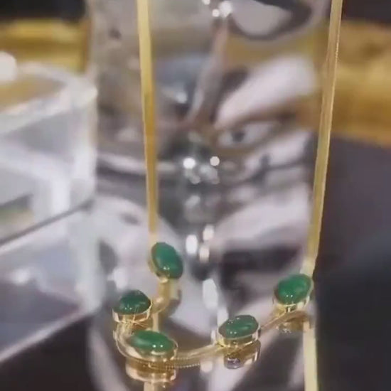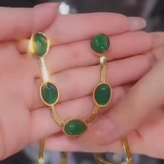 Indulge in the art of refined luxury with the Oval Green Crystal Pendant Necklace Set With Bracelet. Designed for the woman who commands elegance in every gesture, this exquisite set blends lustrous green crystals with a flawless gold finish, creating a look that radiates sophistication and charm.